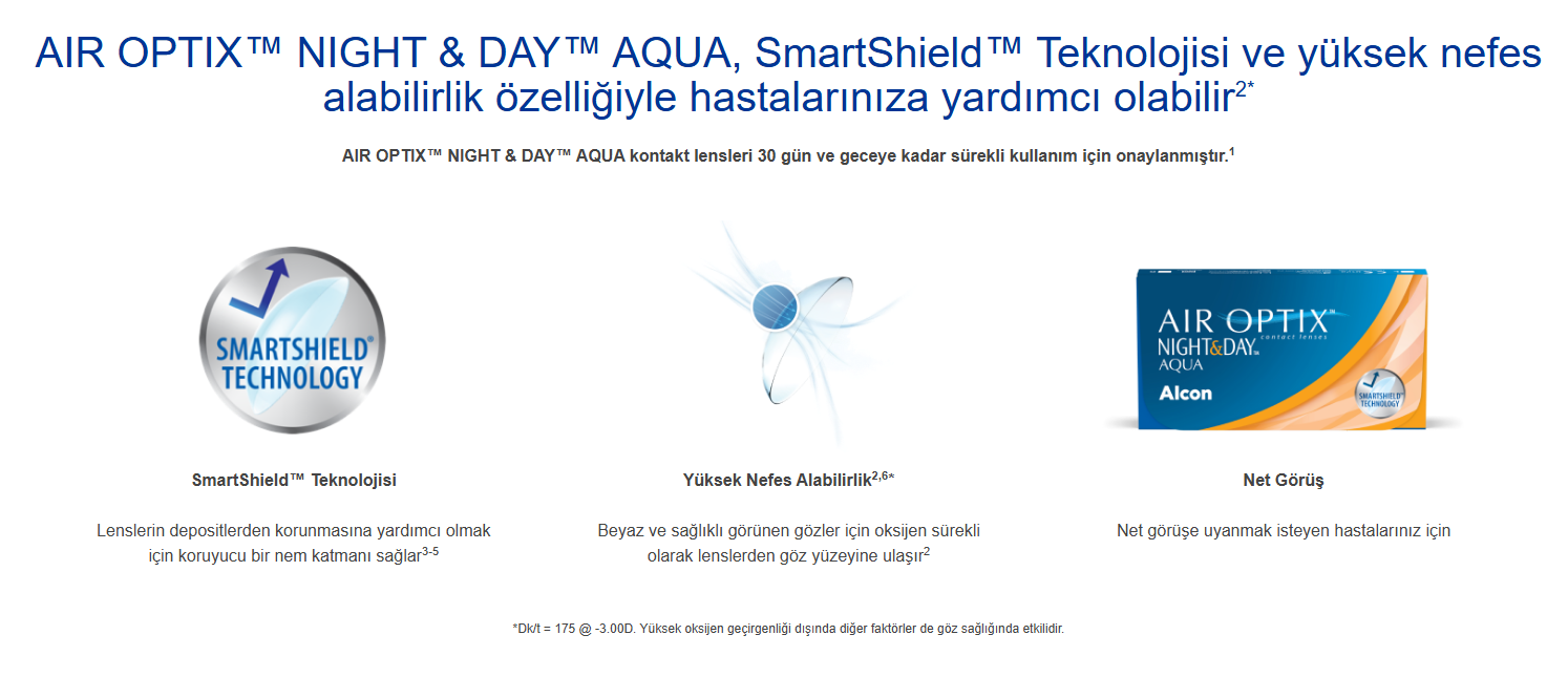 | Lens Türü | Aylık Silikon Hidrojel (Extended Wear & Continuous Wear imkanlı) |