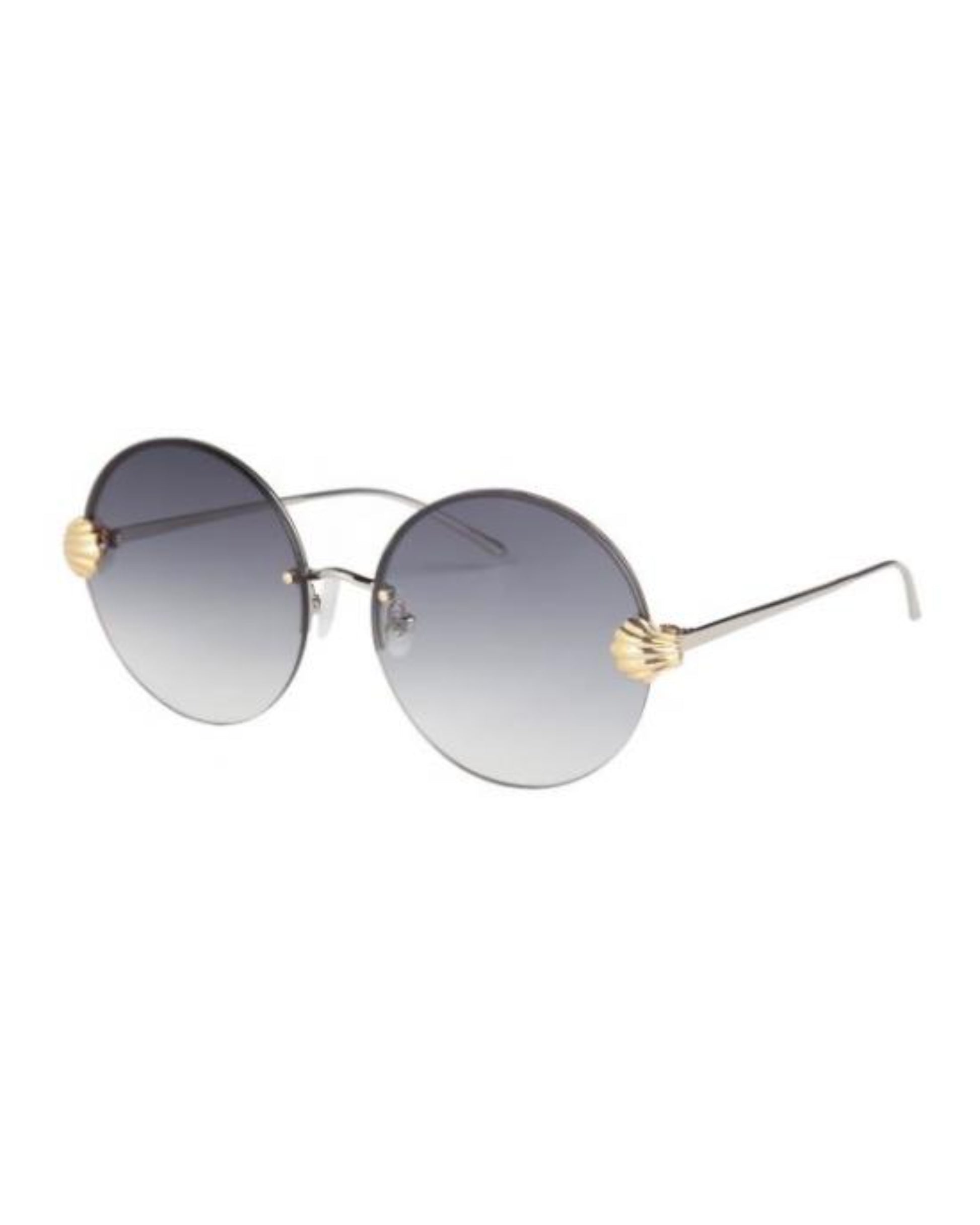 GODDESS modeli, markanın tasarım dili içinde kadınsı zarafeti yüksek bir biçimde yansıtan bir parçadır. Yuvarlak büyük lens formu ve rim-less (çerçevesiz) hatlarıyla yüzü hafifçe çevrelerken, yan profilde gördüğünüz kabuk (“shell”) detayları, açıldığında minik bir inciyi saklayan lüks bir sürpriz sunar. :contentReference[oaicite:2]{index=2} Gri degrade camları sayesinde ışığa göre değişen tonlar kazandırır ve her kombinle zarif uyum sağlar.