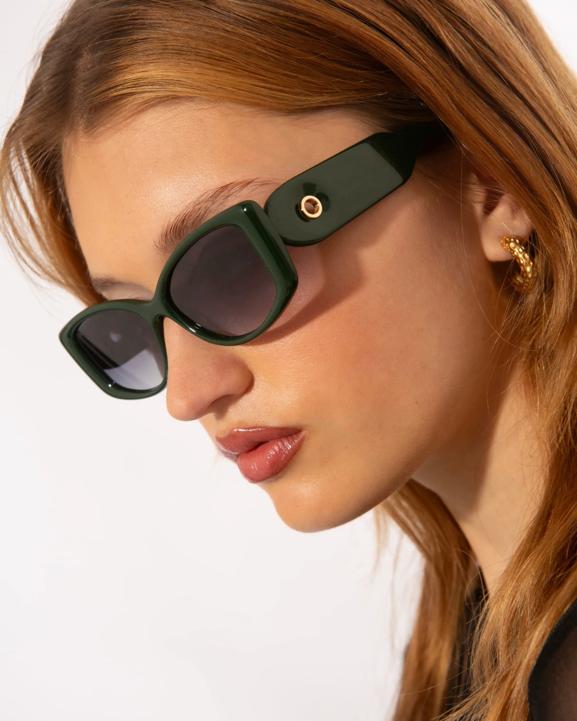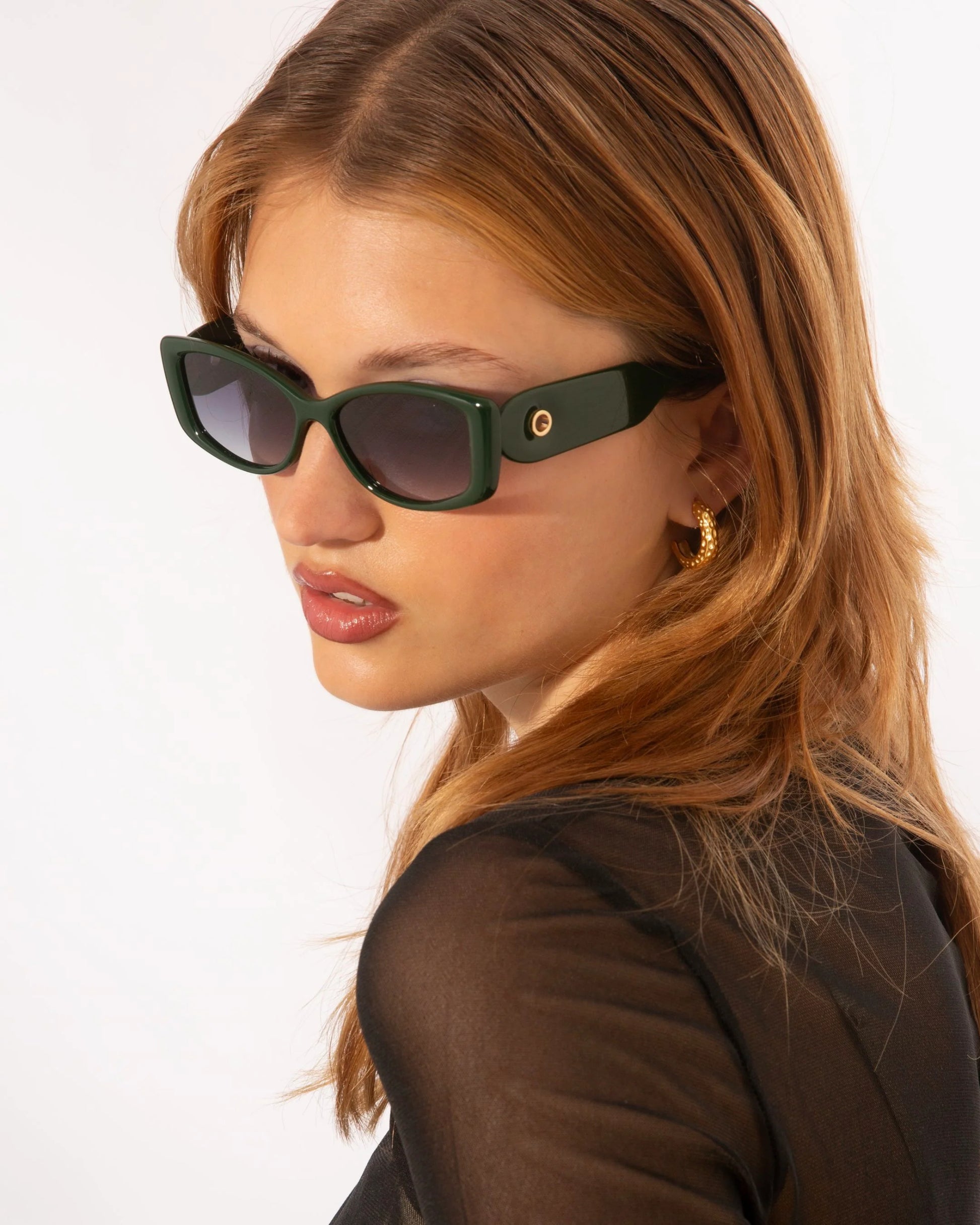 İnce profil metal donanımları ve yeşil gövdesiyle Mene, dikkat çekici ama abartısız bir şıklık arayanlar için ideal. Göz çevresine zarif bir çerçeve sunarken kedi gözü formu yüz hattını yumuşatarak feminen veya güçlü bir ifade yakalamanızı sağlar. UV400 korumalı lensleri sayesinde hem stil hem fonksiyon bir arada.