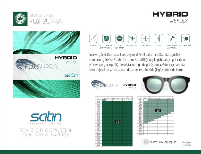 Fuji Supra Hybrid Reflex, yalnızca bir gözlük camı değil; günlük hayatta konfor, şıklık ve koruma isteyen herkes için güvenilir bir tercihtir.