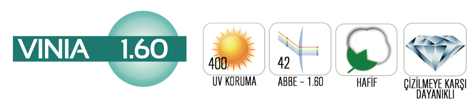 VINIA 1.60, kırılma indisi yüksek olan kullanıcılar için özel olarak tasarlanmış, ince ve hafif yapısıyla öne çıkan şeffaf camdır. Estetik kaygıyı ortadan kaldıran formu sayesinde özellikle + ve - numaralı gözlüklerde daha zarif bir görünüm sunar. Günlük kullanım için idealdir.