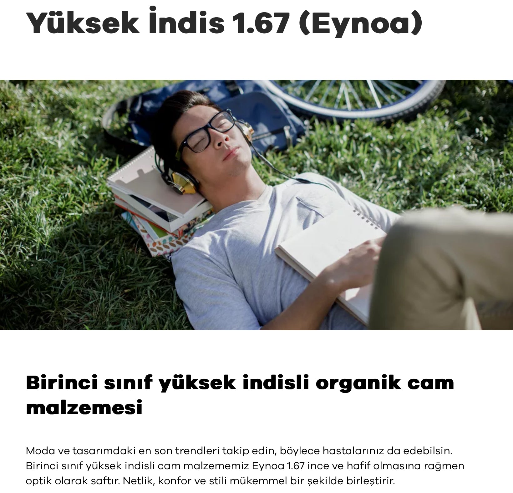- Malzeme: HOYA Eynoa (yüksek indeks)