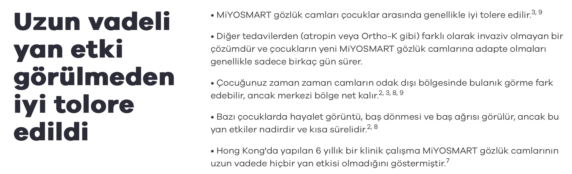 - Klinik çalışmalarda miyopi ilerlemesi ortalama %60 oranında yavaşlatılmıştır (mercek değiştirmeye kıyasla) .