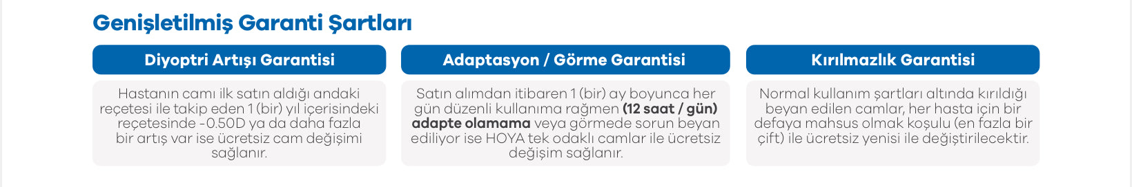 🔒 Genişletilmiş HOYA Garanti Şartları