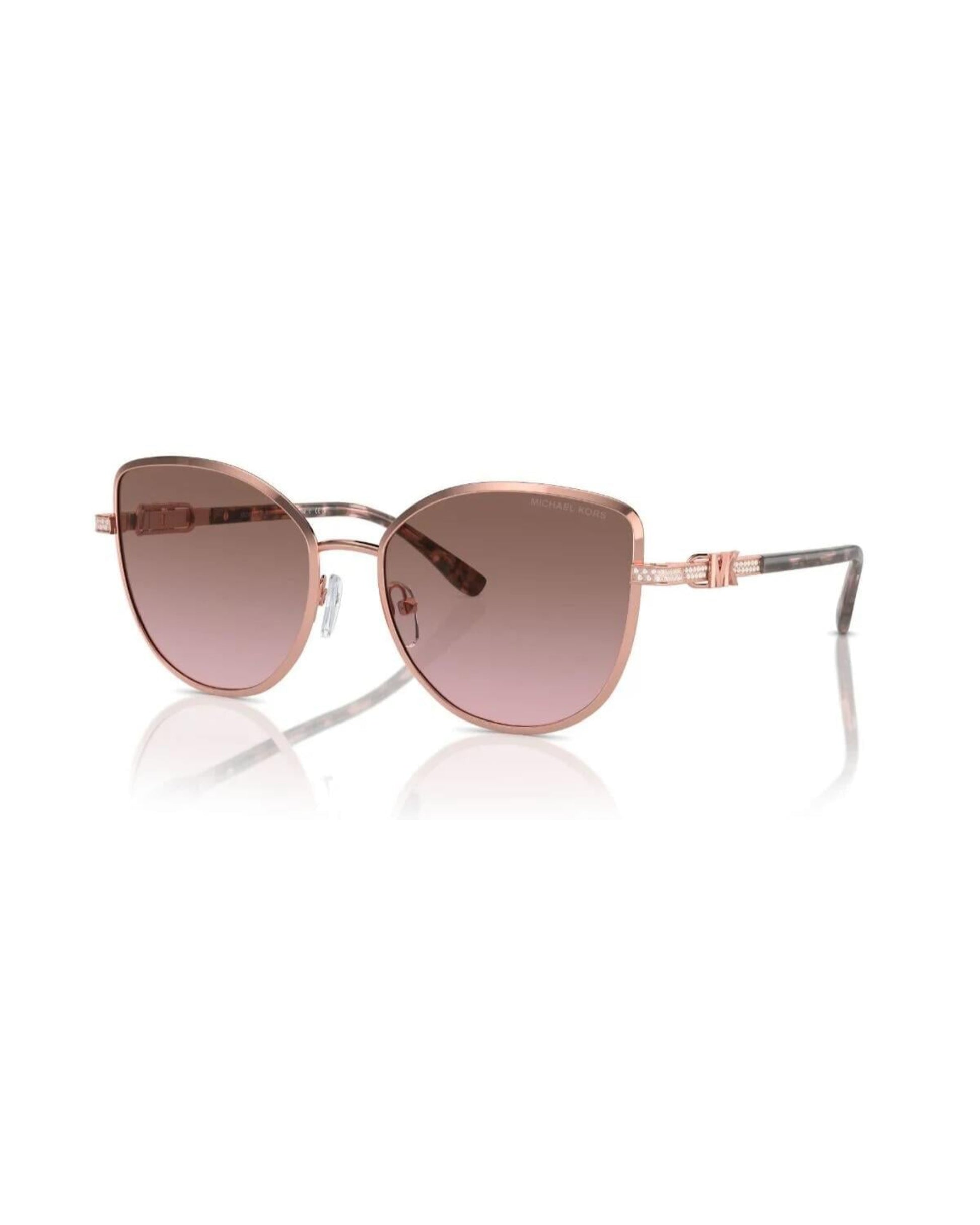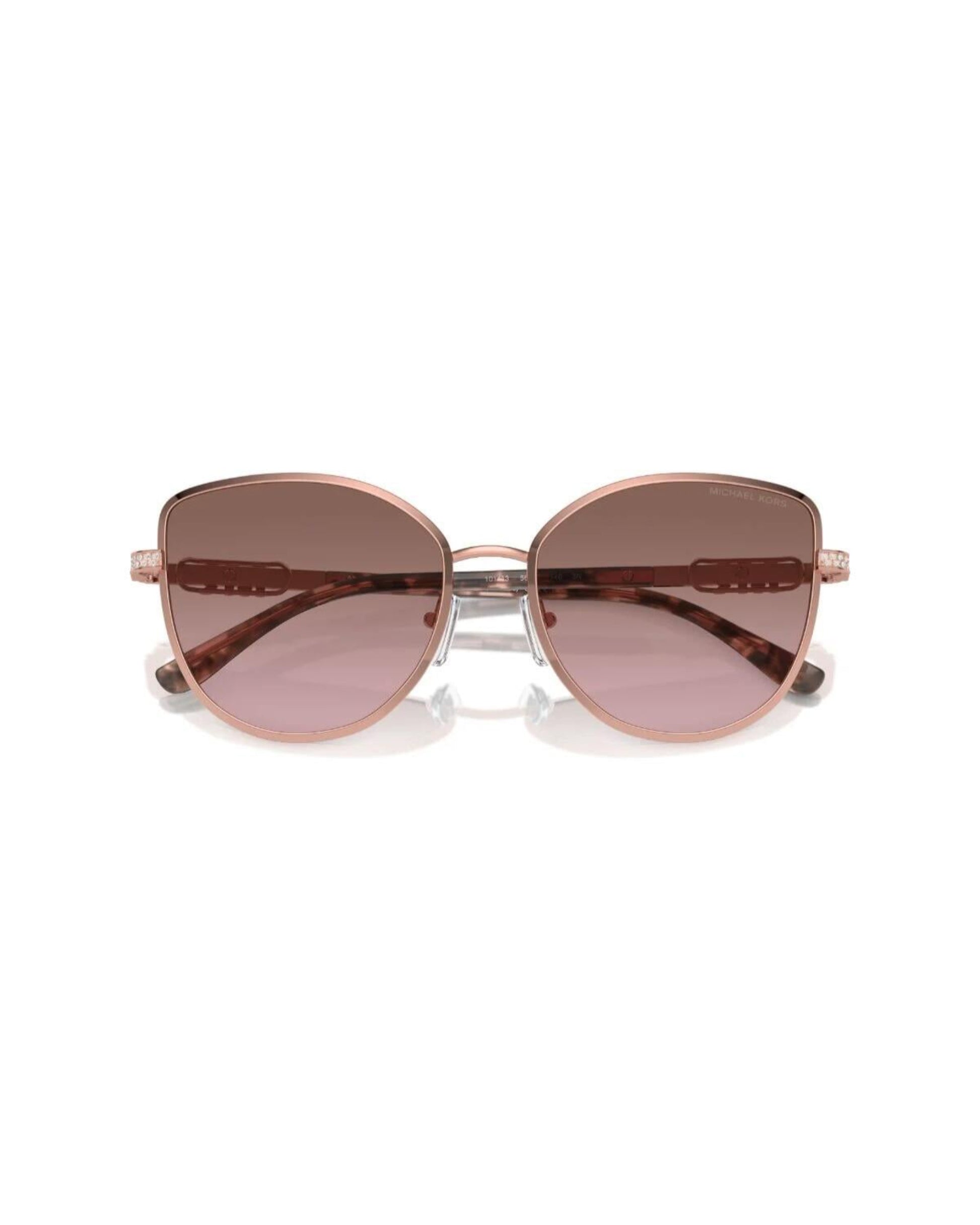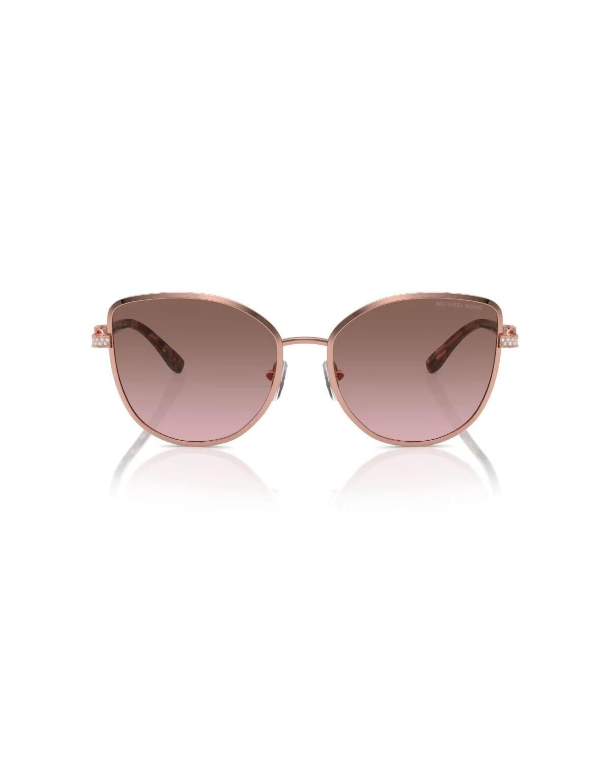 Michael Kors Catalonia MK1144B 110814, zarif detaylarıyla lüksü modern bir formda sunar. İnce metal çerçevesi ve kristal taş işlemeli sap tasarımı, markanın imzası haline gelmiş sofistike çizgisini yansıtır. Altın tonlarının sıcaklığı ve degrade kahve lenslerin zarafetiyle birleşen bu model, her ortamda dikkat çeker.