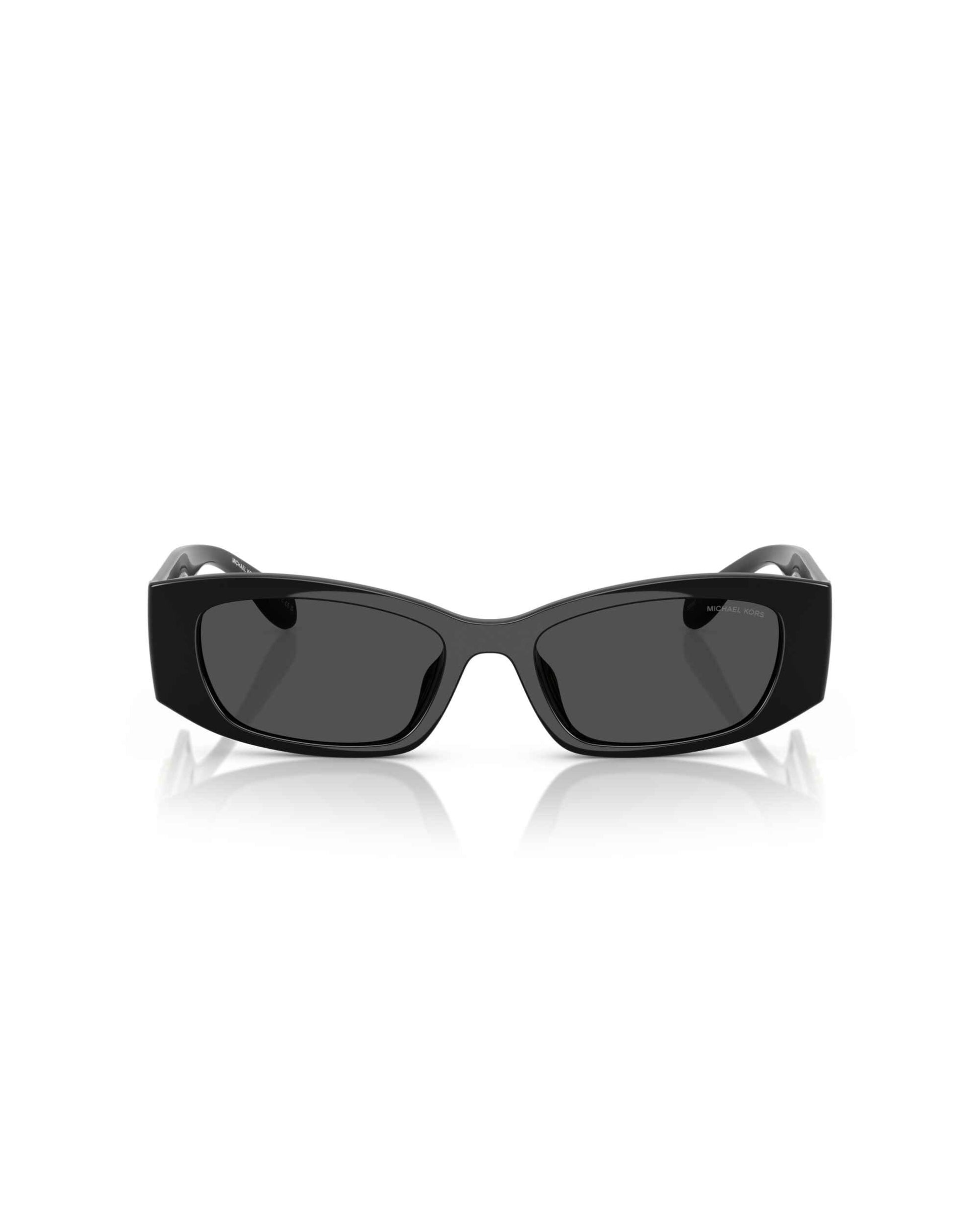 Michael Kors’un **Rhodes** koleksiyonundan **MK2243U 300587**, siyah parlak çerçevesi ve koyu gri düz lensiyle modern bir duruş sunar. Geometrik formu ve net hatlarıyla dikkat çekici bir siluet yaratırken, minimalizm ile lüksü bir araya getirir. Hem şehir yaşamında hem gece kombinlerinde kolaylıkla kullanılabilecek, çok yönlü bir modeldir.