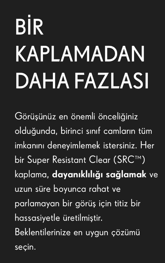 - Kaplama: SRC – çizilmeye dirençli, yansıma önleyici değildir