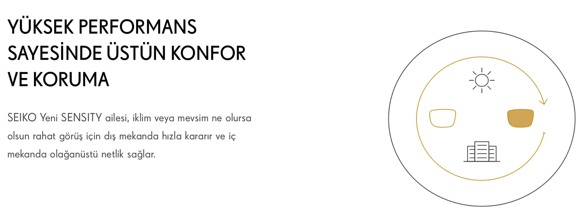 Kare Optik güvencesiyle sunulan Seiko Sensity ve Sensity 2 camlar, ışığın değiştiği her ortamda görüşünüzü sabit tutar – doğal, net ve konforlu.