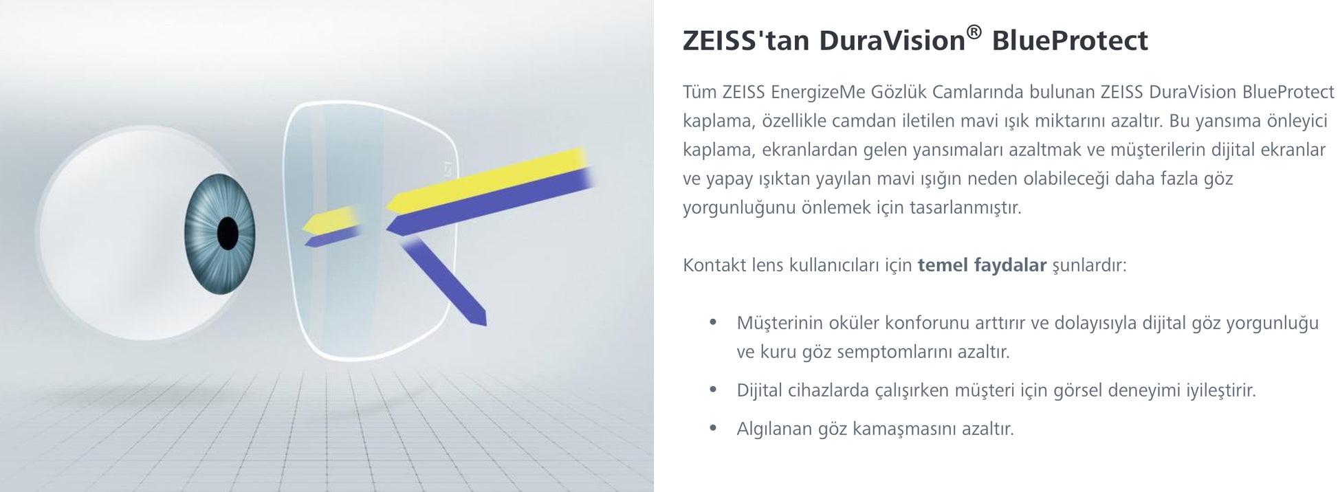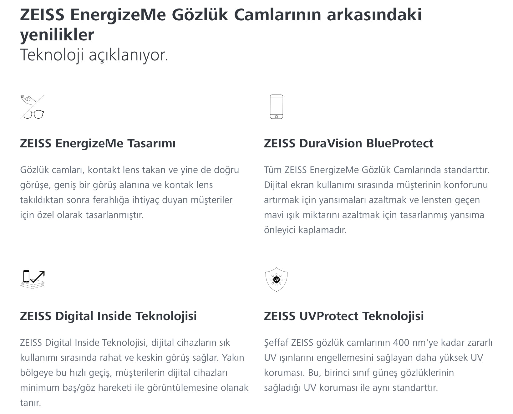 - Tüm ZEISS EnergizeMe beyaz camlarda standart olarak eklenir.