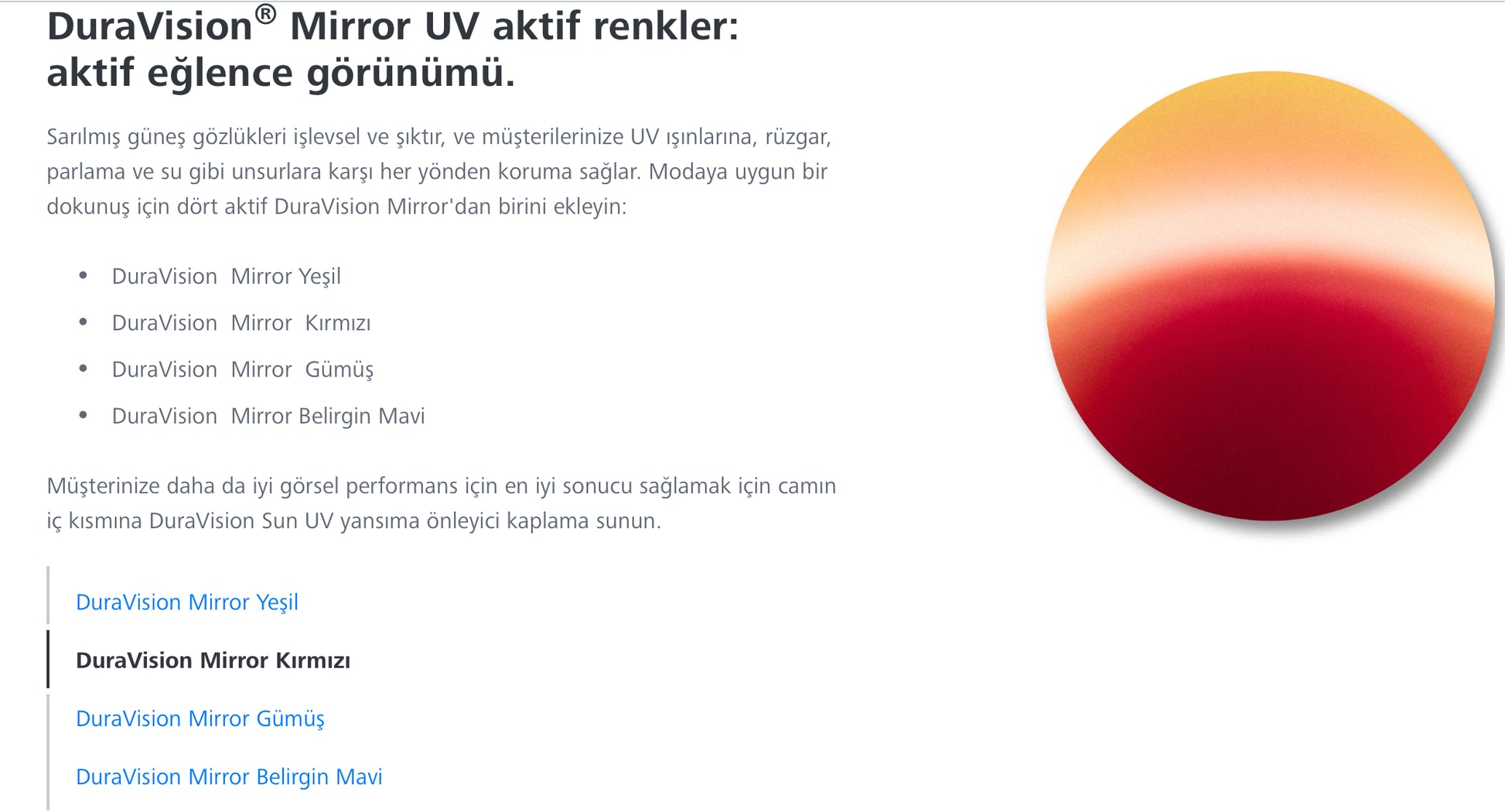 - DuraVision® Chrome / BlueProtect / Platinum UV